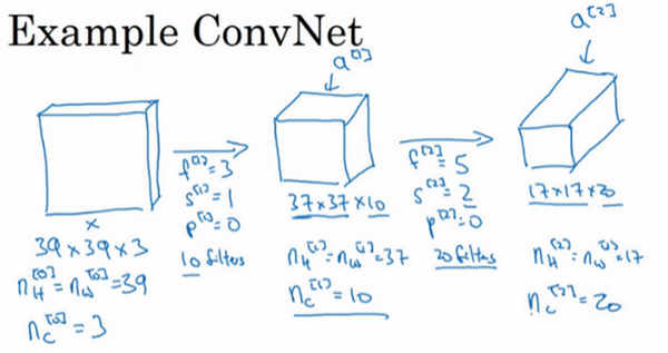 So this is a vis-a-vis typical example of what a convolutional neural network might look like. And I know this seems like there a lot of hyper parameters. We'll give you some more specific suggestions later for how to choose these types of hyper parameters. Maybe one common guideline is to actually not try to invent your own settings of hyper parameters, but to look in the literature to see what hyper parameters you work for others. And to just choose an architecture that has worked well for someone else, and there's a chance that will work for your application as well. We'll see more about that next week.