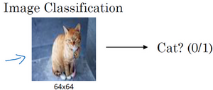 这是我们本节课将要学习的一些问题,你应该早就听说过图片分类,或者说图片识别。比如给出这张64×64的图片,让计算机去分辨出这是一只猫。