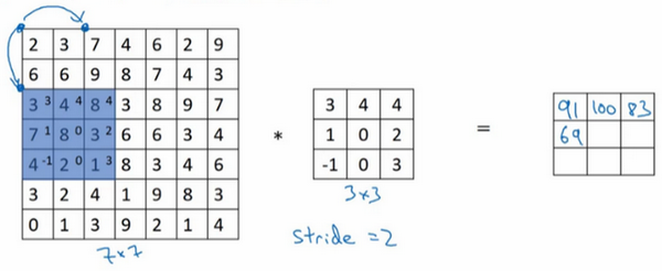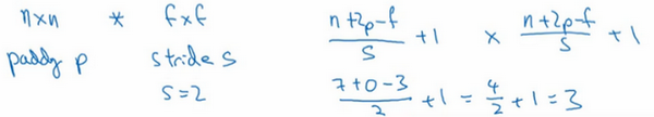 总结一下,池化的超级参数包括过滤器大小和步幅,常用的参数值为,,应用频率非常高,其效果相当于高度和宽度缩减一半。也有使用,的情况。至于其它超级参数就要看你用的是最大池化还是平均池化了。你也可以根据自己意愿增加表示padding的其他超级参数,虽然很少这么用。最大池化时,往往很少用到超参数padding,当然也有例外的情况,我们下周会讲。