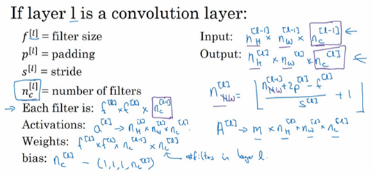 此例中的卷积神经网络很典型,看上去它有很多超参数,关于如何选定这些参数,后面我提供更多建议。常规做法是,尽量不要自己设置超参数,而是查看文献中别人采用了哪些超参数,选一个在别人任务中效果很好的架构,那么它也有可能适用于你自己的应用程序,这块下周我会细讲。
