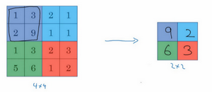 Whereas this feature, it doesn't really exist in the upper right-hand quadrant. So what the max operation does is a lots of features detected anywhere, and one of these quadrants , it then remains preserved in the output of max pooling. So, what the max operates to does is really to say, if these features detected anywhere in this filter, then keep a high number. But if this feature is not detected, so maybe this feature doesn't exist in the upper right-hand quadrant. Then the max of all those numbers is still itself quite small. So maybe that's the intuition behind max pooling.