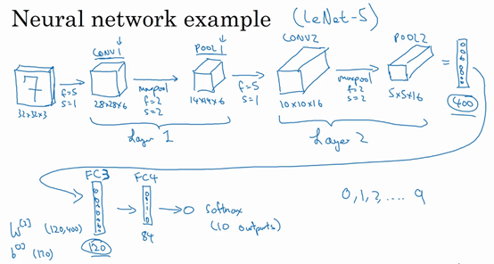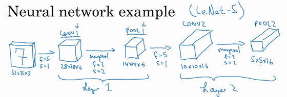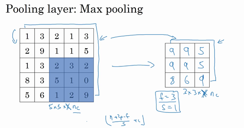 除了这些,池化的内容就全部讲完了。最大池化只是计算神经网络某一层的静态属性,没有什么需要学习的,它只是一个静态属性。