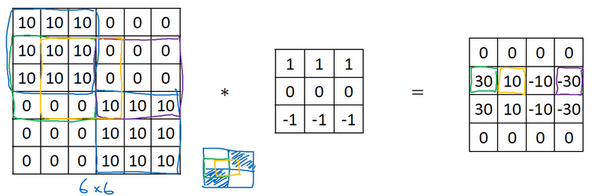 So let's get started. Here's the example you saw from the previous video, where you have this image, six by six, there's light on the left and dark on the right, and convolving it with the vertical edge detection filter results in detecting the vertical edge down the middle of the image.